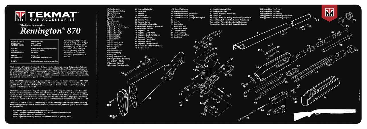 TekMat Remington 870 Mat, 12"x36", Black, Includes Small Microfiber TekTowel, Packed In Tube R36-REM-870