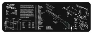 The Tekmat Ruger Mini 14 gun cleaning mat measures 12 x 36 and is 1/8 thick. The over-sized design gives you plenty of room to disassemble your firearm and to clean it without having to move parts all over. This mat comes with an overview of the history of the Mini 14 as well as a simple to follow parts diagram of the parts that make up your Ruger.