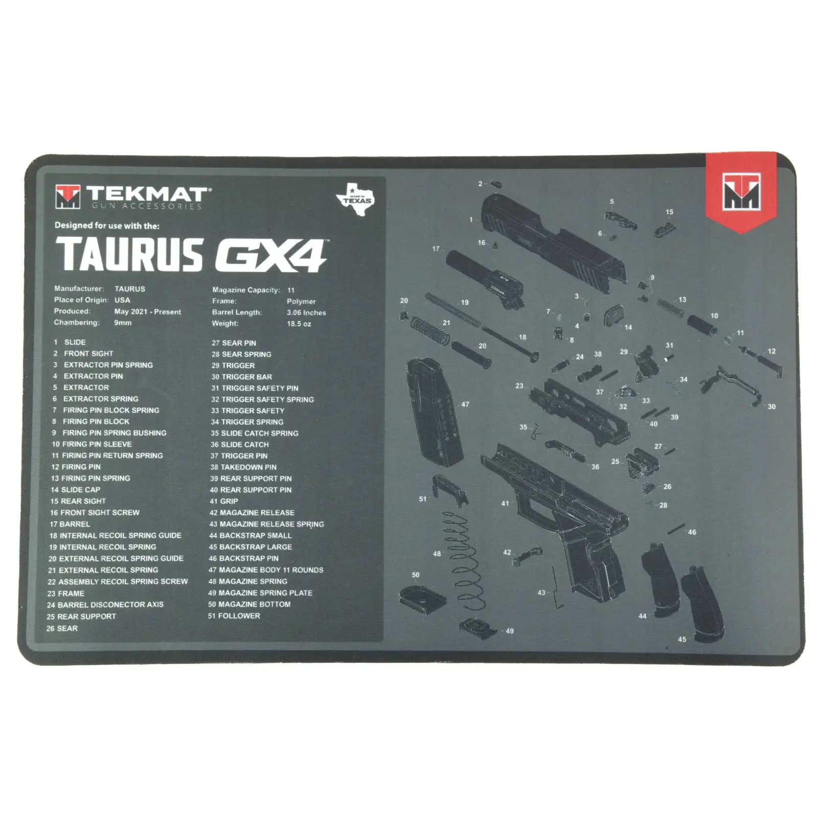 TekMat Tekmat for Taurus GX4, Cleaning Mat, Black TEK-R17-TAURUS-GX4