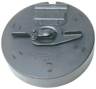 Thompson's 45 ACP 100rd drum. Each drum is shipped with a drum installation device (3rd hand) and a Thompson manual. It works in most full auto models.