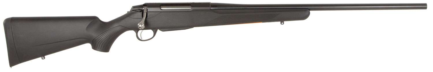 Tikka's T3x Lite combines high performance with lightweight ease. This rifle has a two stage safety, blocking both the trigger and bolt handle. The action is designed for accuracy, reliability, and easy servicing. Its bolt features a spring-loaded plunger ejector and a removable bolt handle, with 70 degree opening angle. The single-stage steel trigger has vertical grooves for added grip, and is easily adjustable through the magazine well from 2 to 4 lbs. The T3x receiver introduces a widened angular ejection port, integral rails for scope mounts and is tapped for a Picatinny scope mount base. T3x Lite models are equipped with the T3x synthetic stock with modular pistol grip and forend capabilities. It comes with the classic low-angled grip with positive checkering for comfort and firm grip in all weather conditions. The cold hammer-forged stainless steel Sako barrel is hand-crowned. This model has a blued metal finish and is configured for right-handed shooters.