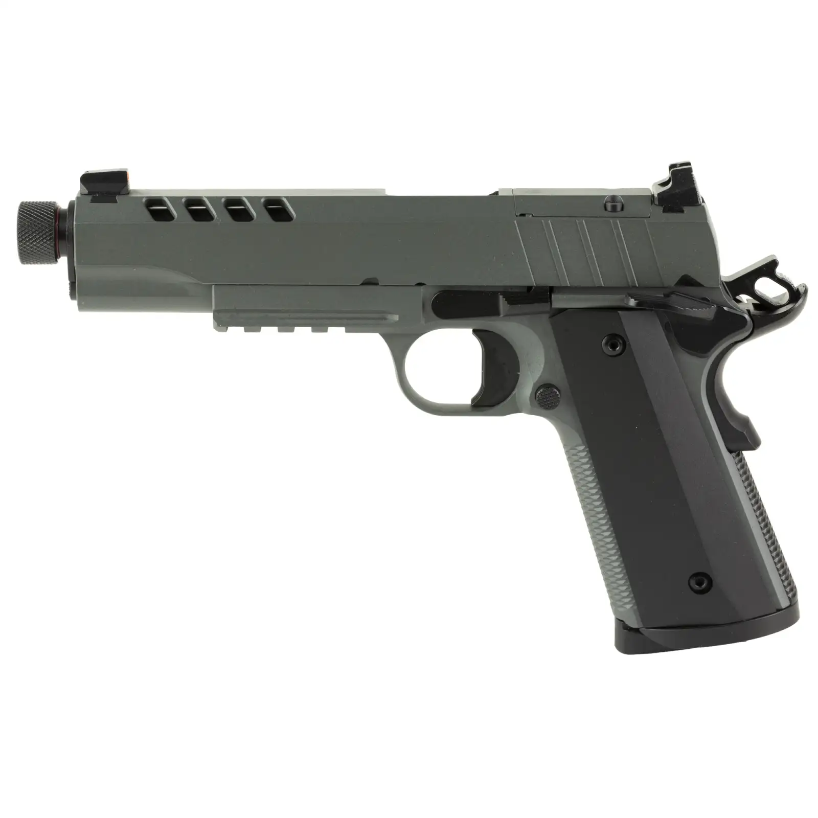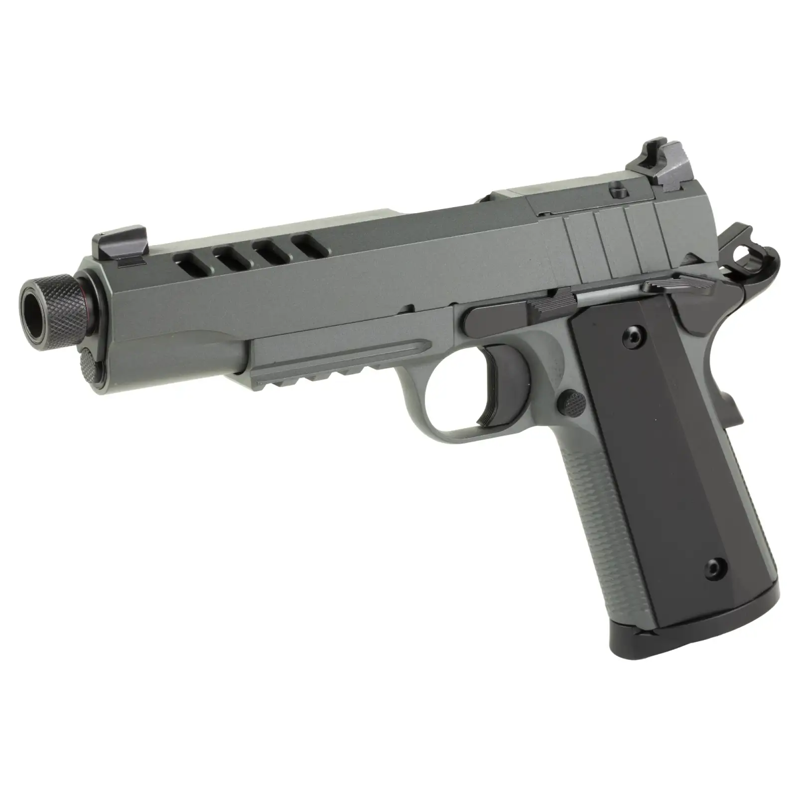Tisas USA 1911, Night Stalker, 1911, Semi-automatic, 45 ACP, 5" Threaded Barrel, Cerakote Finish, Gray, U-Notch Integral Rear and Front Night Sight, 8 Rounds, 2 Magazines, Optic Ready 10100556