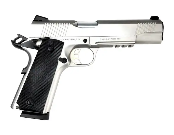 Tactical Rail System - Rotary hammer forged hard chrome plated barrel - Stainless Steel frame and slide - Novak style three dot sights - Flared and lowered ejection port - Extended beavertail style grip safety - Slide release lever take down hole chamfered - Enhanced hammer and trigger - Extended and ambidextrous thumb safety - Beveled magazine well - Trigger housing undercut - Flat main spring housing - Series 70 internals