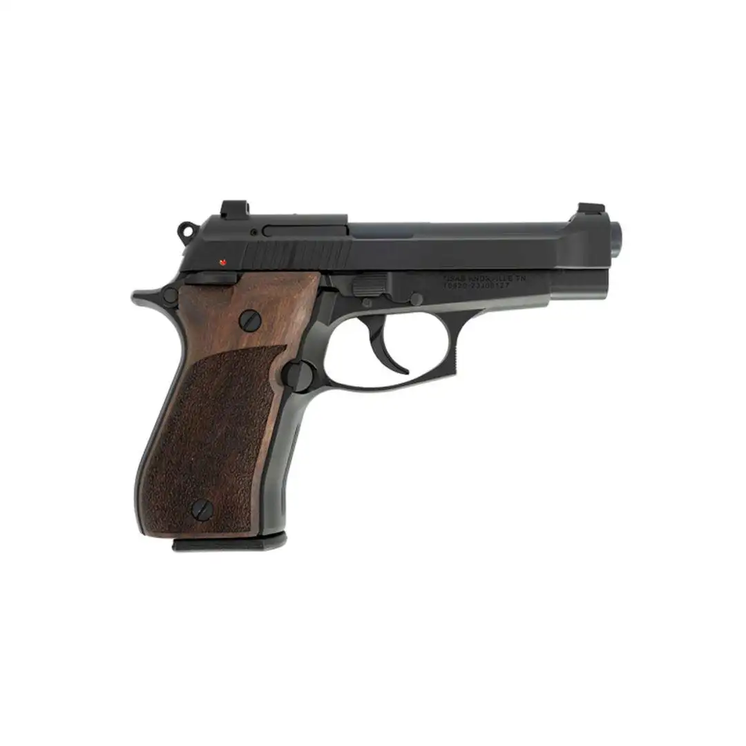 The Fatih 380 brings back the iconic Model 84 with Tisas styling and quality. A tribute to the original design the Fatih B380 uses a 13-round magazine that provides an incredible amount of firepower for the smaller .380 ACP cartridge and features an all-metal frame and slide. Equipped with fixed sights push-button magazine release ambidextrous manual safety and the laser textured walnut grips have a bit of checkering that provides beautiful aesthetics as well as enhanced weapon control. - Tisas pistols come standard with our premium lockable hard case two magazines cleaning kit bushing wrench trigger lock and instruction manual. - Frame: Lightweight Aluminum - Slide: Steel - Caliber: .380ACP - Barrel: 3.98 Forged & Machined Barrel w/ Button Rifling - Sights: 3-Dot Fixed 92 Pattern Dovetail Cut - Grips: Turkish Walnut - Finish: Black Cerakote - Weight: 1lb 6oz