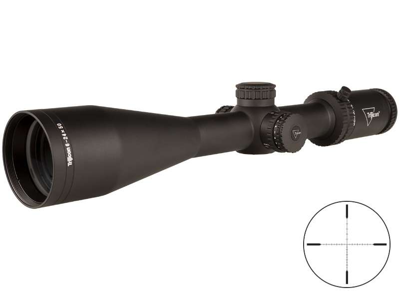 The Trijicon Tenmile 6-24x50 long-range riflescope is designed to reach out and touch your targets at extreme distances. Its also built with extreme durability, as its tested to military standards and protocols. Featuring a daylight bright MRAD Ranging reticle with an illuminated LED dot, you will enjoy a pinpoint aiming solution in any condition. So when you're ready to engage at extreme range, choose the Tenmile 6-24x50 long-range riflescope.