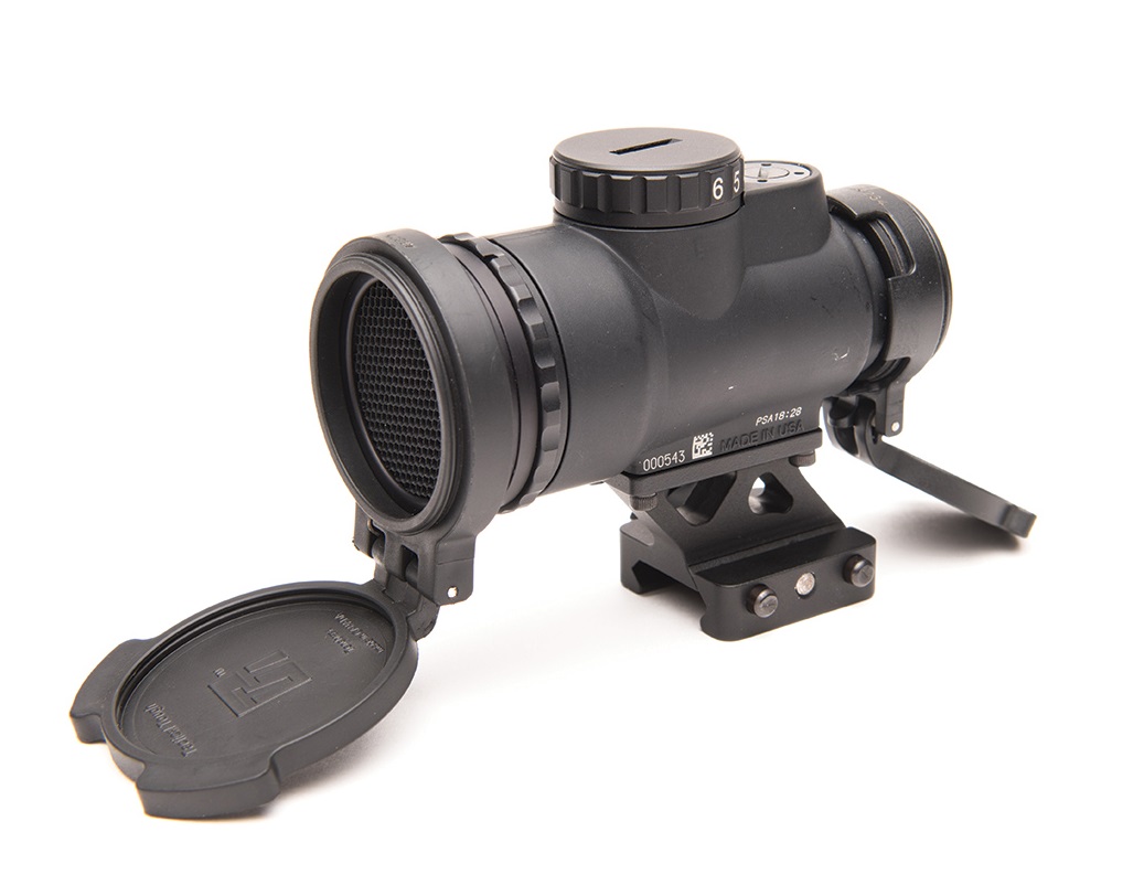 The Trijicon Miniature Rifle Optic (MRO®) is a reflex-style, sealed sight intended for use on rifles, carbines, and shotguns to provide fast target acquisition. It is designed to be used with both eyes open, providing the operator with maximum situational awareness. The large aperture and tapered light path maximizes the viewing area in such a small optic, allowing for fast target engagement – especially from non-standard shooting positions. Advanced lens coatings and electronics produce a crisp red dot. The brightness control dial on the MRO is specifically designed for ambidextrous usage. With a mid-adjustment “off” position and eight discernible brightness settings, this brightness dial allows for quick and ergonomic adjustments.