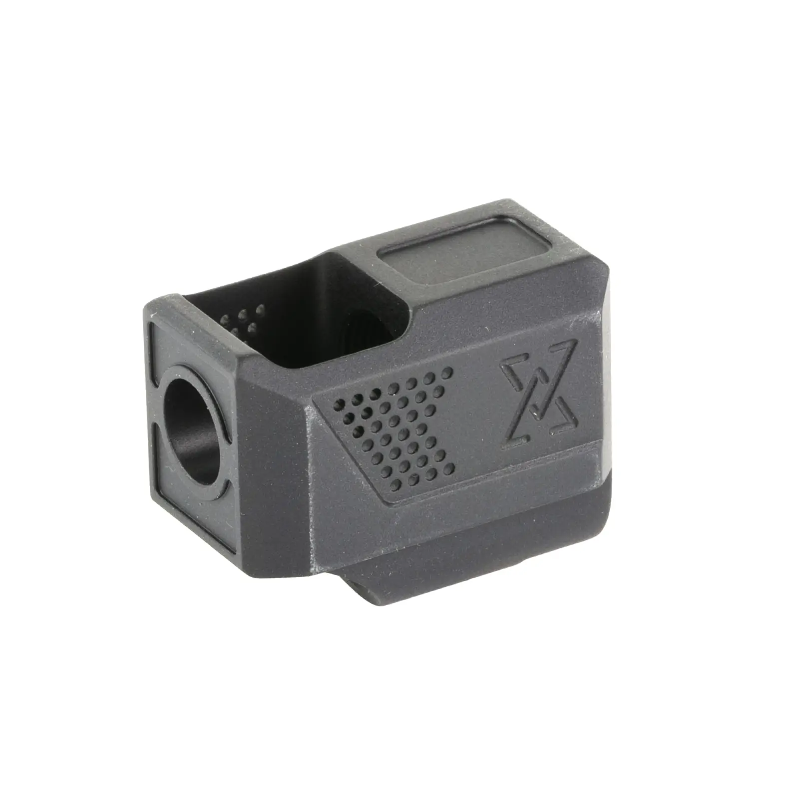 The True Precision Locking Compensator is designed to enhance shooting accuracy by significantly reducing muzzle rise and felt recoil. It's market defining integrated locking block ensures that the compensator can be securely attached without damaging the firearm's barrel or threads, nor does it require a thread locking compound for a secure fit.