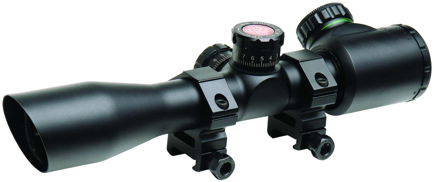 TruGlo's Tru-Brite Xtreme Compact Tactical Scope comes with 1" rings for mounting to your accessory rail. Its fully coated lenses provide maximum brightness, clarity and contrast. The fingertip windage and elevation adjustment are under screw down caps and the durable leaf spring is for windage and elevation adjustments. This one piece tube made of aircraft quality aluminum with a durable, scratch resistant, non reflective matte finish.
