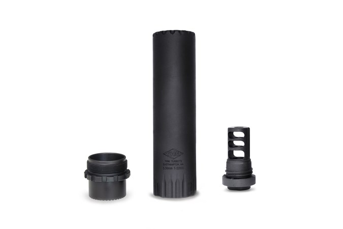 Yankee Hill Machine Co TURBO T3 Suppressor, 556NATO, Rifle Suppressor, 5.59", Matte Finish, Black, Includes QD Mount/Muzzle Brake, 1/2x28 YHM-2175-MB-28