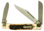 The Uncle Henry Senior Rancher folding pocket knife has a 7Cr17 high carbon stainless steel clip point blade, Sheepfoot blade, and clip Spay blade with nail pulls. It also has Staglon handles with nickel silver bolsters, brass pins and heat treated bolsters.