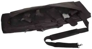 US PeaceKeeper's RAT (Rapid Assault Tactical) case is discreet and compact in style, but heavily padded and double-stitched to keep your rifle and gear protected and secure. Front pocket is a perfect place for a backup handgun and spare ammo. Each case includes straps to secure the firearm via the internal webbing system and contains a detachable carry sling which doubles as strap for the detachable ammunition pouch which holds up to six (6) magazines. Wrap-around handles and padded shoulder strap allow for carry options, and US PeaceKeeper metal zipper pulls allow the case to be lockable.
