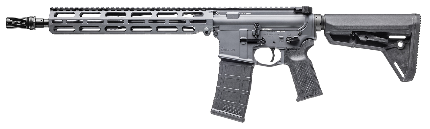 The VK-1 rifle uses a patented low-profile piston system design featuring optimum gas port sizing and an advanced piston assembly. Featuring a unique cup and spigot design that improves the gas seal and overall efficiency of the gas system and a staged gas bleed system that allows the rifle to operate consistently, either suppressed or unsuppressed, with varying types of factory ammo. The reimagined VK-1 Short Stroke Piston System includes a fully-supported one-piece op rod and removable gas block which matches the footprint and weight of a standard DI AR-15 while providing the benefits of a piston driven system. Includes two Magpul Gen 3 PMAGs, rifle lock and hard case.