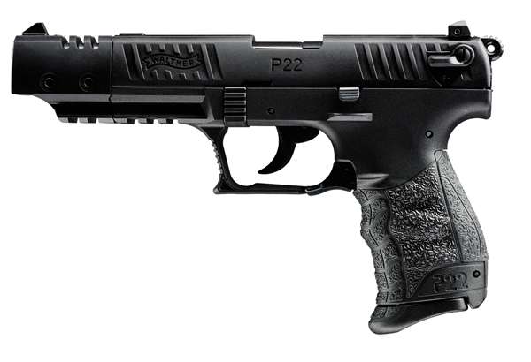 Walther P22 Target is at home on the shooting range or around the camp. It features a contemporary styling performance design concepts from Walther centerfire handguns, captured recoil spring and decocker built into the safety. The P22 features an ambidextrous magazine release and slide safety; Picatinny rail; interchangeable backstraps; low profile three-dot sights; front and rear slide serrations; loaded chamber indicator and external slide stop locks. *CA compliant.