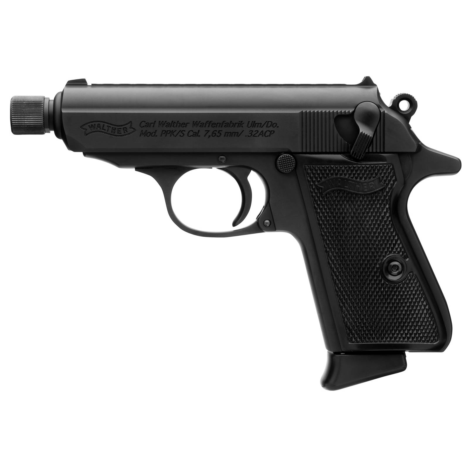 Walther, PPK/S SD, Semi-automatic, DA/SA, Metal Frame Pistol, 32ACP, 3.3" Barrel, Threaded 1/2X28, Steel Construction, Matte Finish, Black, Fixed Sights, 8 Rounds