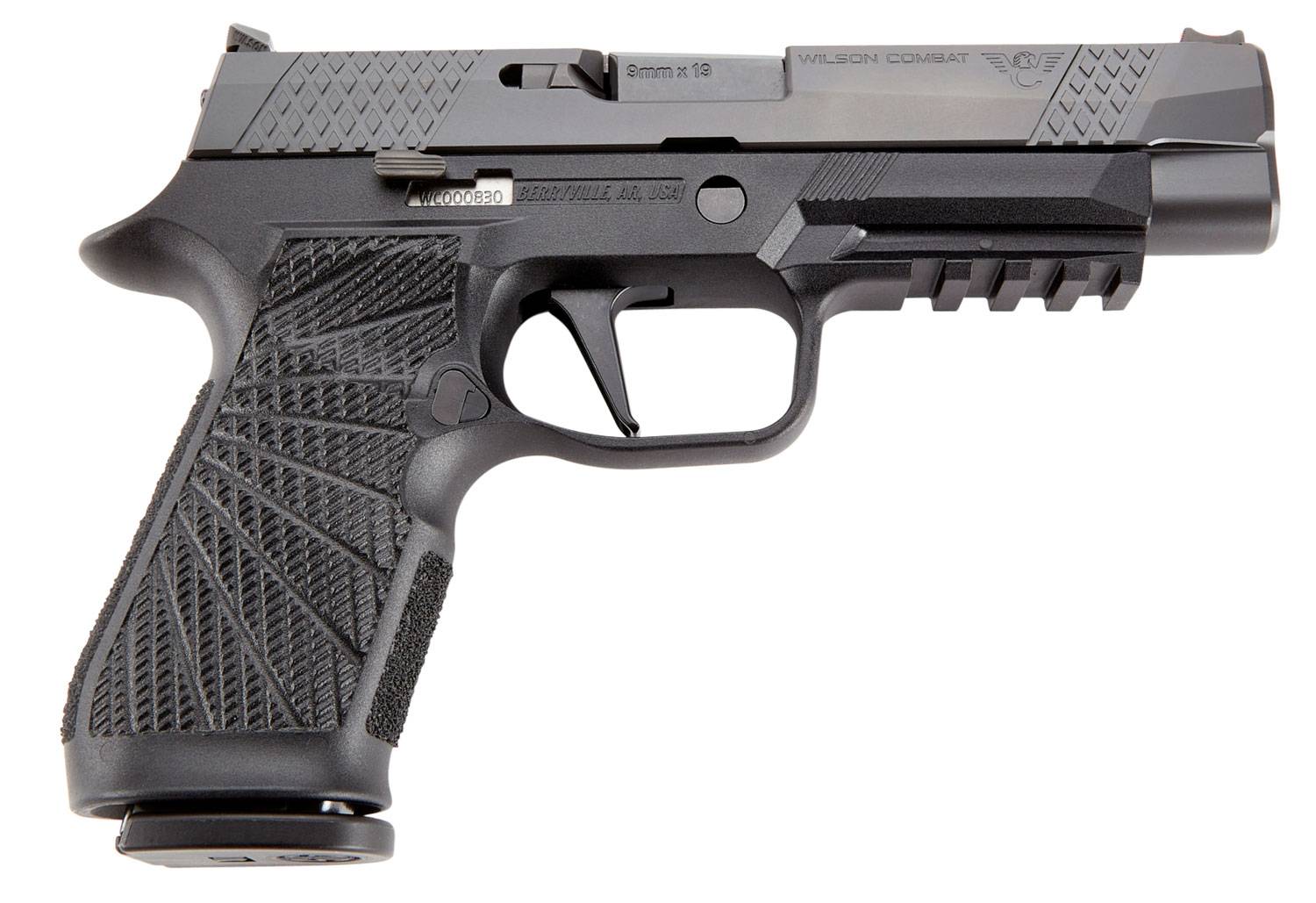 Wilson Combat and SIG SAUER are pleased to announce the availability of a Wilson Combat enhanced P320 9mm semi-automatic pistol collaboration, the WCP320. Using the Wilson Combat SIG P320 grip module, our in-house re-machined slide and Wilson Combat performance battlesights, the Wilson Combat Optimized WCP320 is tailored for precision tactical pistol shooting. Featuring the Wilson Combat polymer grip module; the slide has been machined with the Wilson Combat X-TAC pattern for improved manipulation under stress. The front and rear cocking serrations, as well as the slide top, wear this signature Wilson Combat pattern with the Wilson Combat logo on the slide. The stainless steel slide and chromoly barrel wear the most advanced black DLC (Diamond-Like-Carbon) physical vapor deposition finish; The SIG SAUER flat-faced XFULL trigger is standard on the WCP320 and gives shooters a lower finger position on the trigger which increases leverage for a lighter, smoother trigger pull and Wilson Combat Battlesight with red fiber optic front sight. Includes two 17rd X-Series magazines.