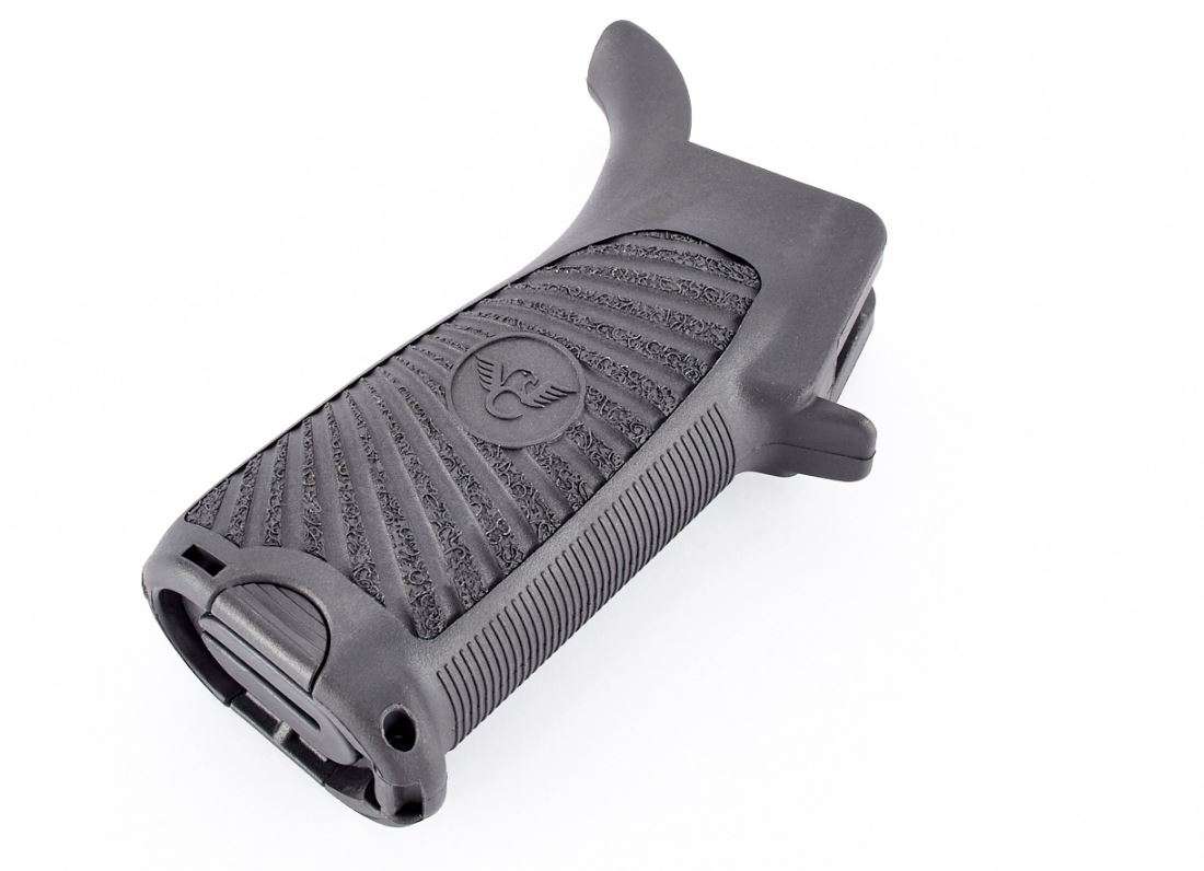 Wilson Combat's Bravo Company Gunfighter Grip with Starburst is one of the more comfortable and ergonomic grips available for the AR-15. This nearly unbreakable polymer construction has a comfortable, natural grip angle for dynamic shooting and molded Wilson Combat exclusive Starburst design pattern for a sure grip. Its water-resistant storage area is perfect for keeping lube or batteries.