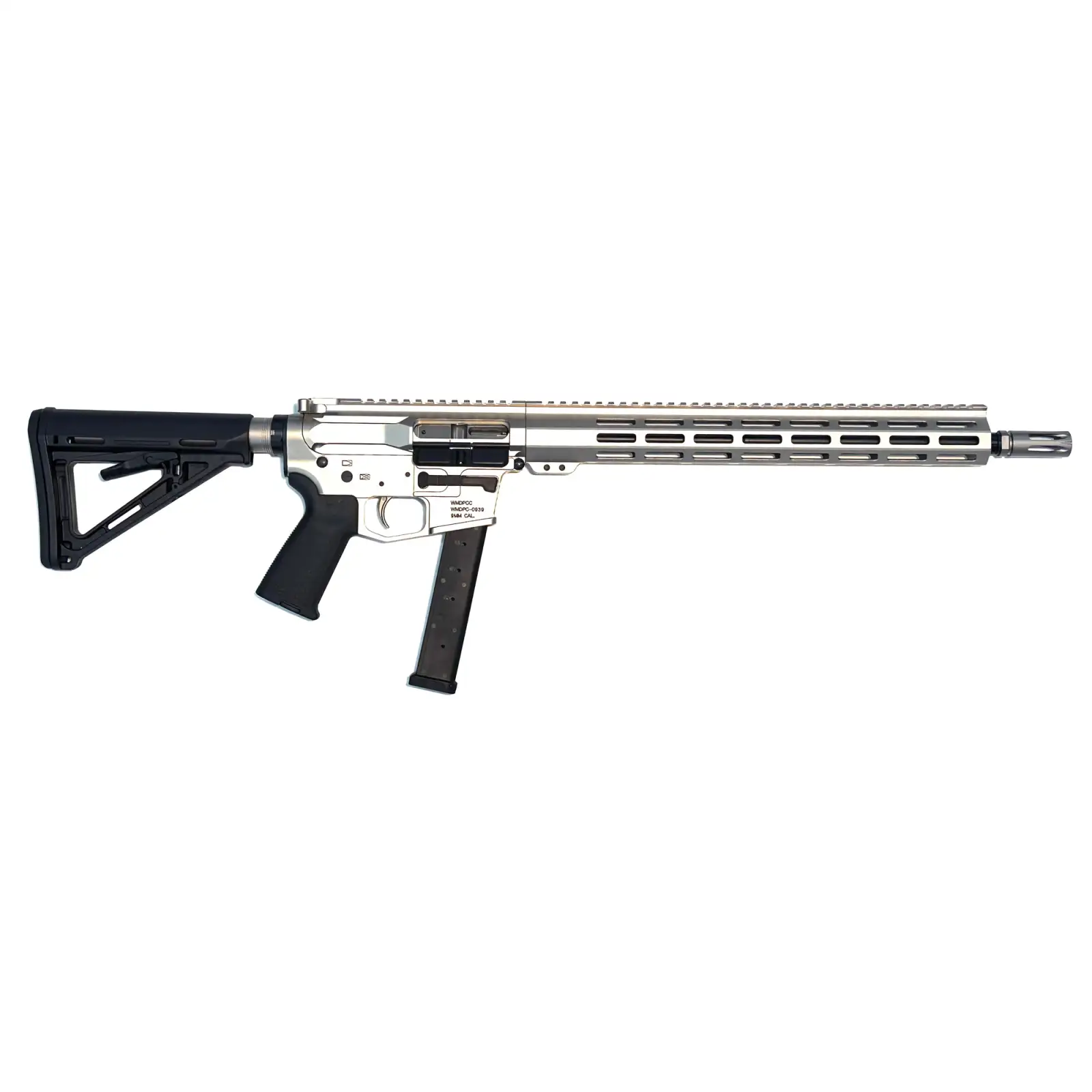 WMD Guns Beast, Semi-automatic, PCC, 9MM, 16" Barrel, NiB-X Finish, Silver, Black Magpul MOE Grip, 33 Rounds, 1 Magazine, Includes Tactical Bag 1-9MMCARBINE