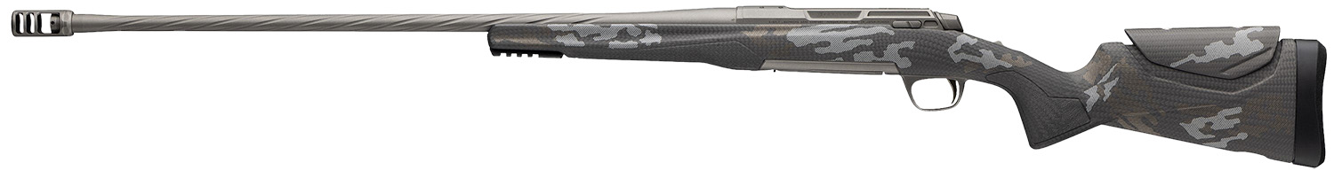 The X-Bolt 2 Mountain hunting rifle features a carbon fiber stock with a compression molded carbon fiber bedding block and accent graphics; Cerakote Tungsten finish on a spiral fluted, threaded barrel with a threaded muzzle; redesigned receiver and bolt; stainless steel receiver w/X-Lock scope mounting system and easy to reach top tang safety. Includes Recoil Hawg muzzle brake and thread protector.