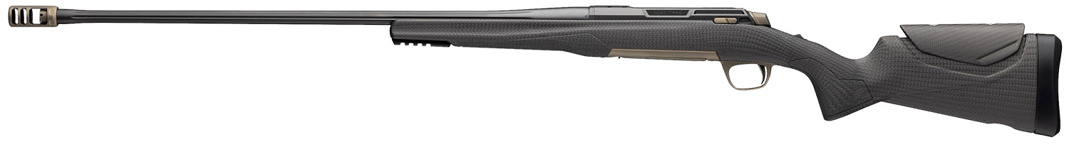 The X-Bolt 2 Pro premium bolt action hunting rifle for big game. Features a carbon fiber stock with adjustable comb; two-tone styling, matte blue barrel and receiver, bronze Cerakote bolt, bolt handle, bottom metal and Recoil Hawg muzzle brake; spiral fluted bolt; aluminum bolt handle reduce rifle weigh; shorter, spiral fluted barrel with 5/8"-24 muzzle threads is optimized for use with a suppressor. X-Lock Scope Mounting System uses four screws per base for rock-solid attachment to the receiver. Includes Recoil Hawg muzzle brake and thread protector.