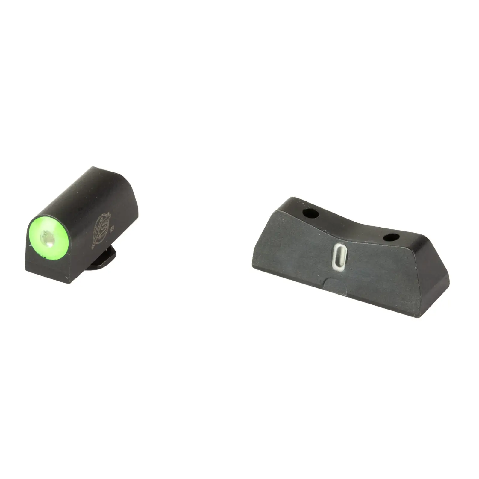 XS Sights DXT2 PRO Series Big Dot Night Sights offer the front sight visibility you expect from XS Big Dots with the added corrosion resistance of a Black Nitride finish and the enhanced durability of the tac lamp tritium vial in the Big Dot. DXT2 PRO Series Big Dot sights drive focus to the front sight using an industry-leading large, high-contrast front and a low-profile V-notch rear. DXT2 PRO Series Big Dot front sights use a glow dot that absorbs light and glows in low light levels before it is dark enough to see the tritium. The increased surface area of the convex dot increases light absorption, intensifying the charge of the glow properties of the dot. The aluminum-sleeved tac lamp tritium insert improves upon an already tough-as-nails front sight. The dot-the-i sight picture, with a tritium dot in the front sight and a tritium bar in the rear, prevents confusing the front and rear sight in high-stress situations. In most gunfights, the victim and attacker are both moving, and the victim's focus is drawn to the threat. The wide field of view increases visibility of the front sight and the threat downrange. Both sights feature a Black Nitride finish for enhanced corrosion resistance and durability. Outside Diameter Big Dot 0.188"; fits in common holsters. Do not use sight press/pusher tool. Fits Glock models 42, 43, 43X, and 48 - standard and MOS.