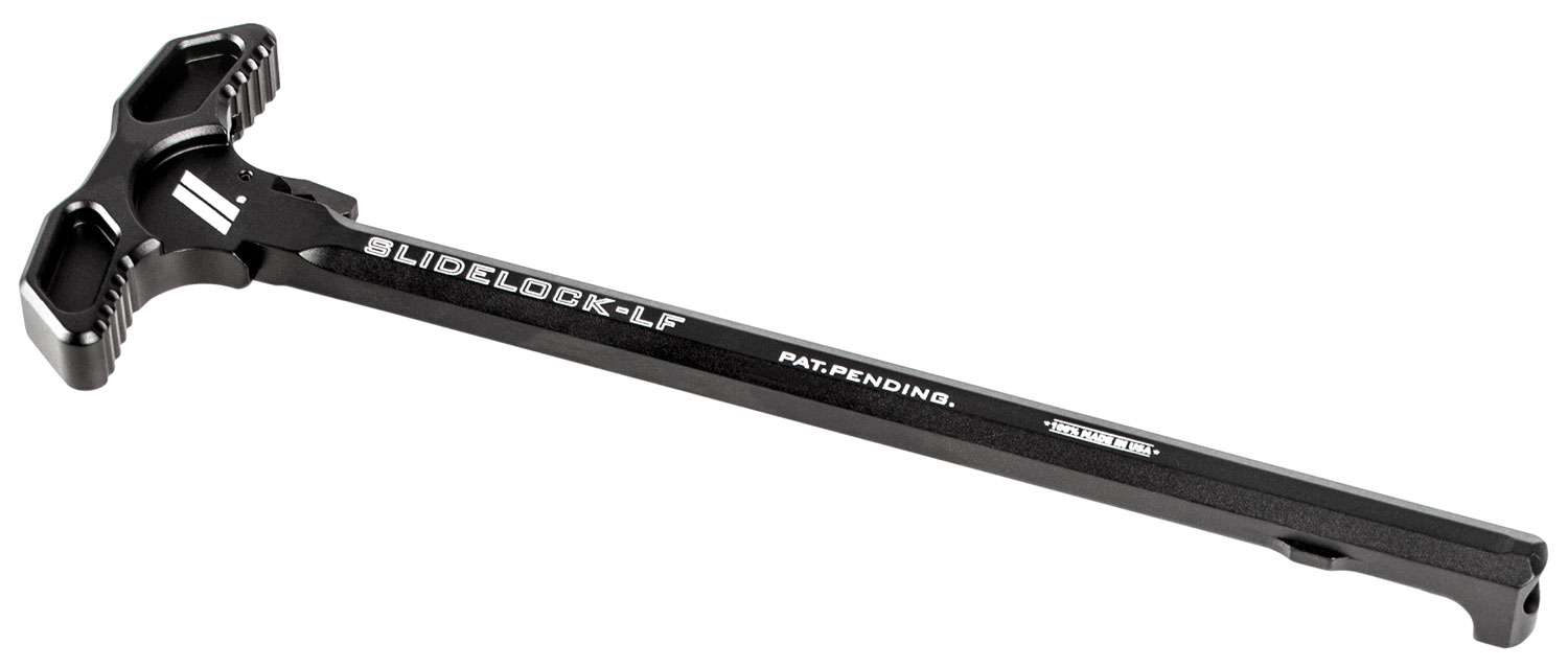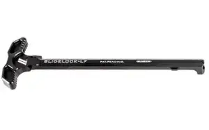ZEV Technologies Slide Lock Charging Handle has a unique design that features smooth ambidextrous operation with fewer moving parts than any other charging handle on the market. It is machined from a single piece of 7075-T6 billet aluminum with a black hardcoat anodize finish for greater strength and durability. The handle also has a black nitride steel capture latch and is textured for superior grip and ergonomics.